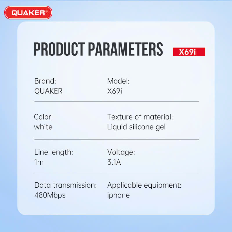 Cáp Sạc Silicon Quaker X69 – Sạc Nhanh 3.1A | Dài 1M | Siêu Mềm – Chống Cháy – Chịu Nhiệt Cao