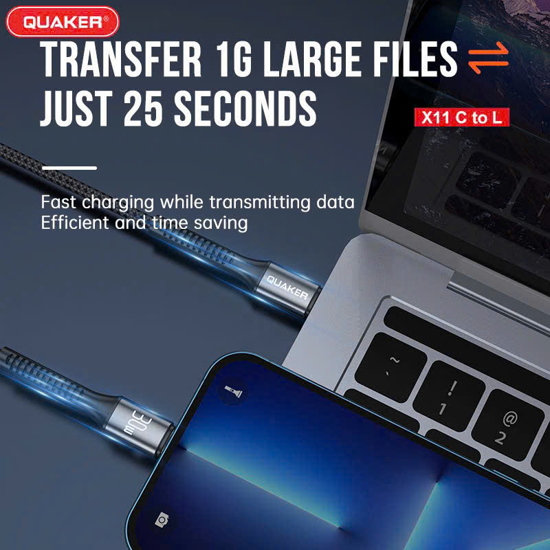 Quaker X11 C to L là dòng cáp sạc nhanh cao cấp dành riêng cho người dùng thiết bị Apple. Với thiết kế dây dù dẹt chắc chắn, hỗ trợ sạc nhanh chuẩn PD công suất 30W, kết hợp khả năng truyền dữ liệu ổn định, đây là lựa chọn lý tưởng cho nhu cầu sạc nhanh và sử dụng bền lâu.