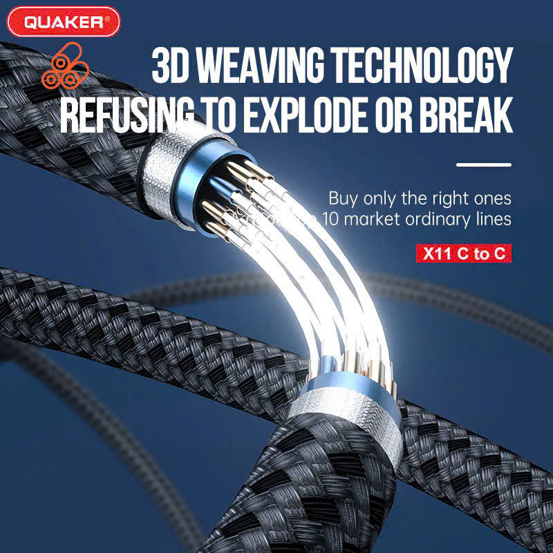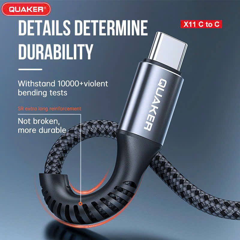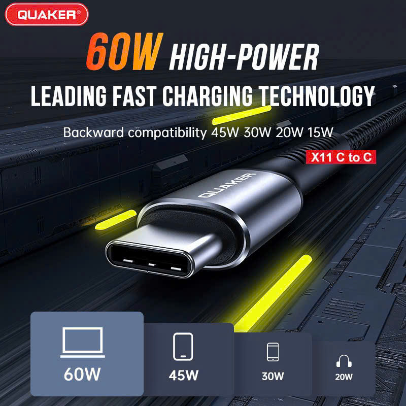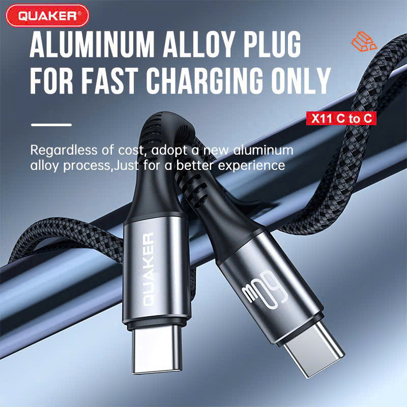 Quaker X11 C to C là dòng cáp sạc nhanh chuẩn PD dành cho các thiết bị sử dụng cổng Type-C như smartphone, máy tính bảng, laptop và pin sạc dự phòng. Với thiết kế dây dù dẹt chắc chắn, hỗ trợ sạc nhanh công suất lên đến 60W và khả năng truyền dữ liệu ổn định, sản phẩm mang đến trải nghiệm sạc an toàn – hiệu quả – bền bỉ theo thời gian.
