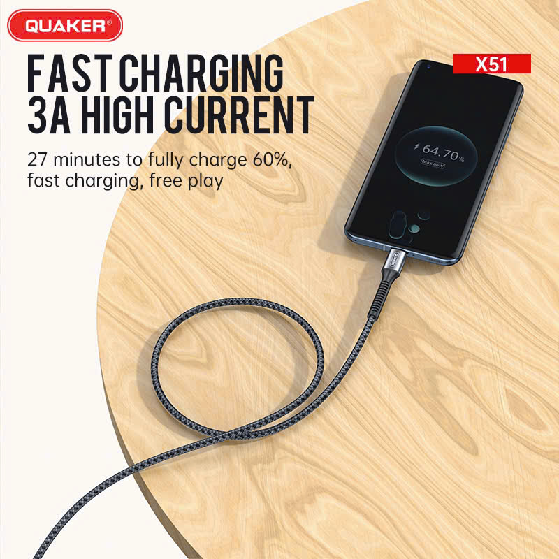 Cáp Sạc Nhanh 3A Quaker X51 dây dù 2M là lựa chọn lý tưởng cho những ai cần một chiếc cáp sạc bền bỉ, tốc độ cao và an toàn.
