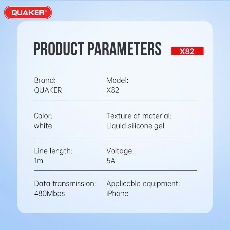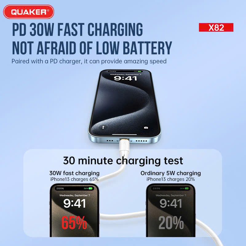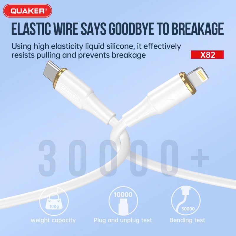 Cáp Sạc Nhanh Quaker X82 là lựa chọn hoàn hảo cho người dùng iPhone, iPad và các thiết bị Apple sử dụng cổng Lightning. Với chuẩn sạc nhanh PD 30W, chất liệu silicon siêu mềm và lõi cáp cao cấp, sản phẩm không chỉ mang đến tốc độ sạc vượt trội mà còn đảm bảo sự bền bỉ, tiện dụng và an toàn khi sử dụng.
