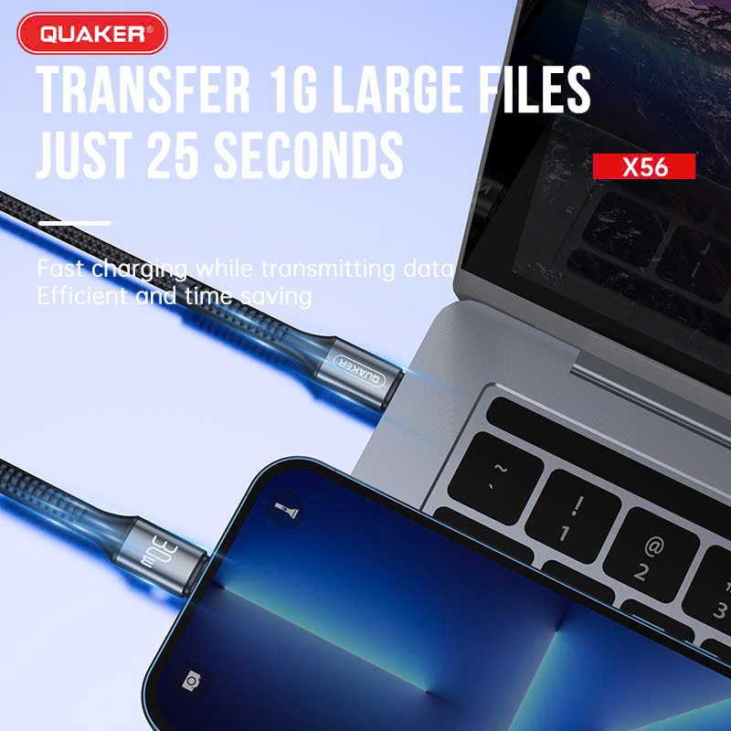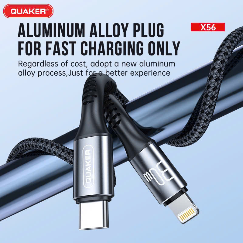 Cáp Sạc PD 30W Quaker X56 là lựa chọn lý tưởng cho người dùng iPhone và các thiết bị dùng cổng Lightning. Với khả năng hỗ trợ sạc siêu nhanh chuẩn PD 30W và truyền dữ liệu tốc độ cao, sản phẩm mang đến trải nghiệm an toàn, tiện lợi và bền bỉ.