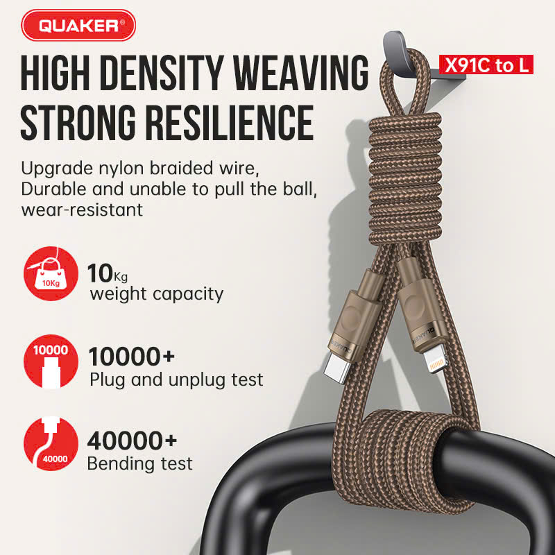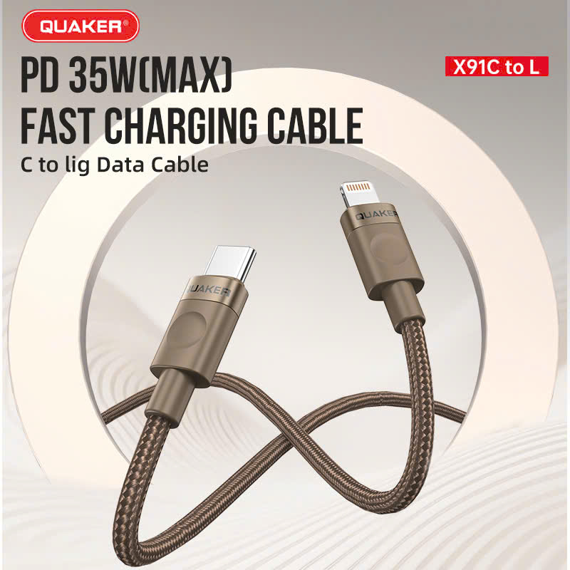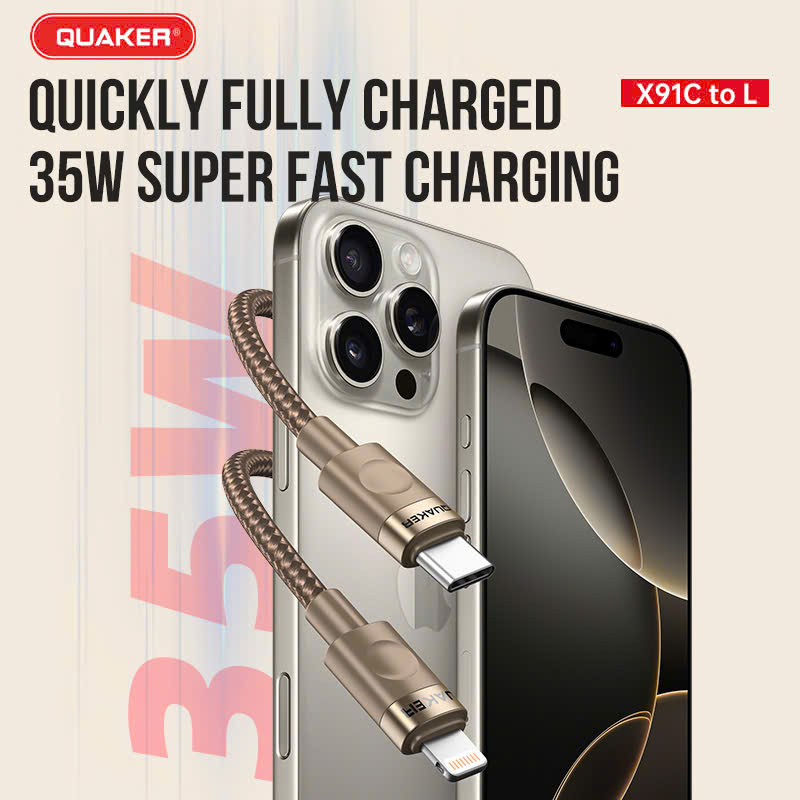 Quaker X91 C to L là cáp sạc cao cấp dành cho các thiết bị Apple với cổng Lightning, hỗ trợ sạc nhanh 35W, đảm bảo sạc an toàn, ổn định và tiết kiệm thời gian. Với dây dù bản to siêu chắc, lõi đồng nguyên chất và đầu cáp kim loại đúc nguyên khối, sản phẩm mang đến trải nghiệm bền bỉ – tiện lợi – sang trọng.