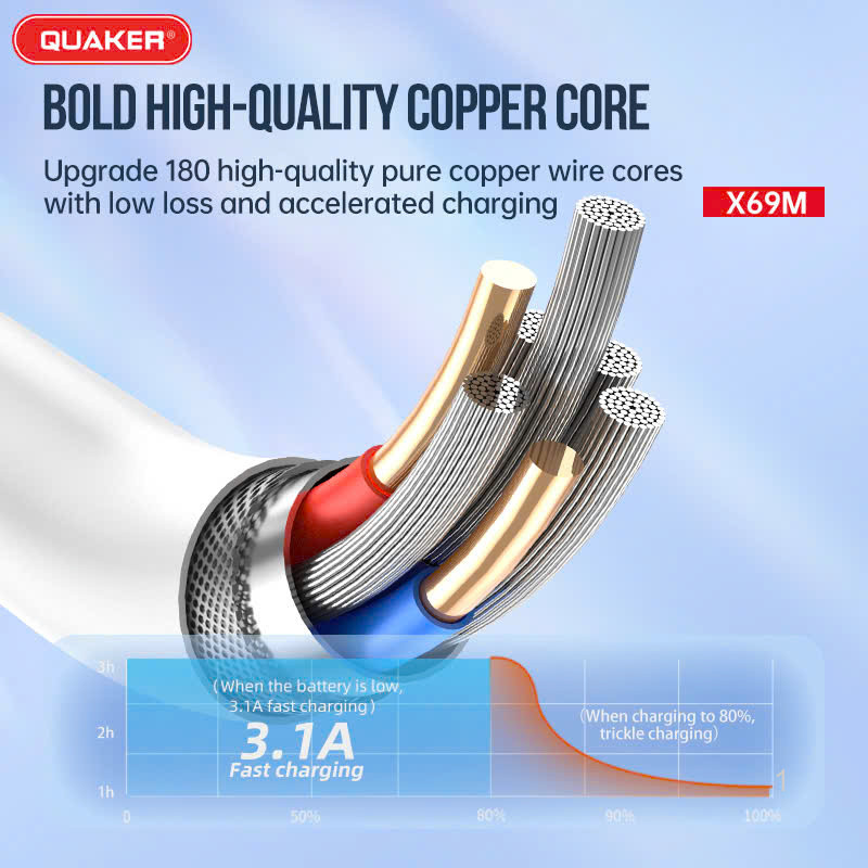 Cáp Sạc Silicon Quaker X69 là dòng cáp cao cấp với thiết kế cao su non mềm dẻo, mang lại độ bền vượt trội và cảm giác sử dụng linh hoạt. Sản phẩm hỗ trợ sạc nhanh 3.1A cùng khả năng truyền dữ liệu ổn định, phù hợp cho nhu cầu sử dụng hằng ngày.