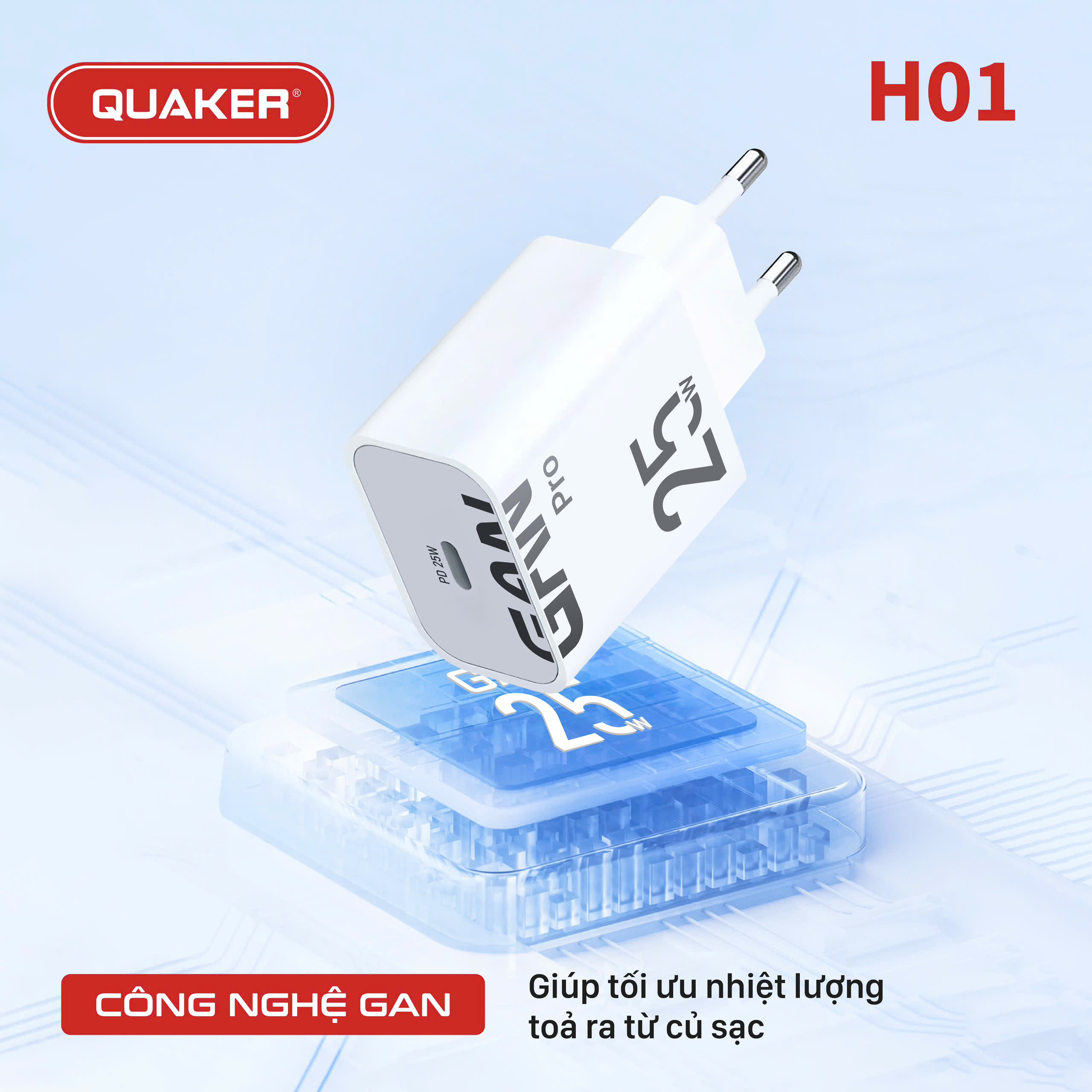 Quaker H01 là bộ sạc cao cấp ứng dụng công nghệ GaN (Gallium Nitride) tiên tiến, giúp tối ưu hóa hiệu suất sạc, giảm nhiệt, tiết kiệm năng lượng và tăng tuổi thọ thiết bị. Thiết kế siêu nhỏ gọn, tiện lợi cùng dây sạc 1.5M bọc dù chắc chắn, hỗ trợ sạc nhanh cho nhiều thiết bị Apple và các thiết bị khác.