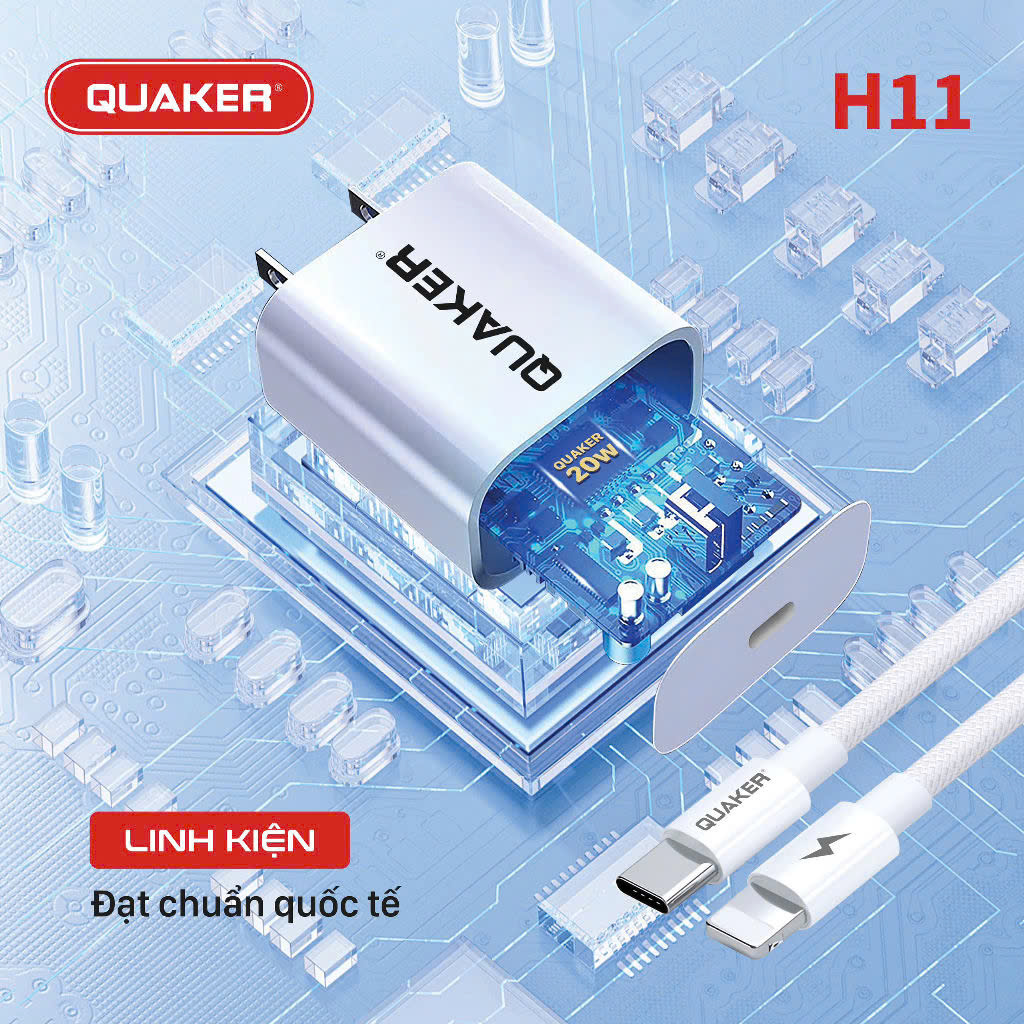 Quaker H11 20W là giải pháp hoàn hảo cho nhu cầu sạc nhanh và bền bỉ, đi kèm dây dù dài 1M và củ sạc 20W tiện lợi. Thiết kế nhỏ gọn, hiện đại, tương thích với nhiều thiết bị, đảm bảo an toàn tối ưu khi sử dụng.