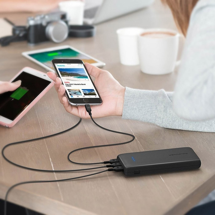 Bạn có thể sạc đầy trước cho pin dự phòng tại nhà và mang theo bên mình khi ra khỏi nhà để dùng trong những trường hợp đặc biệt không cần đến ổ điện. Chưa kể, pin sạc dự phòng ngày nay với nhiều loại khác nhau, có mức lưu trữ điện năng lớn và có thể sạc được cùng lúc 3 đến 4 thiết bị di động.