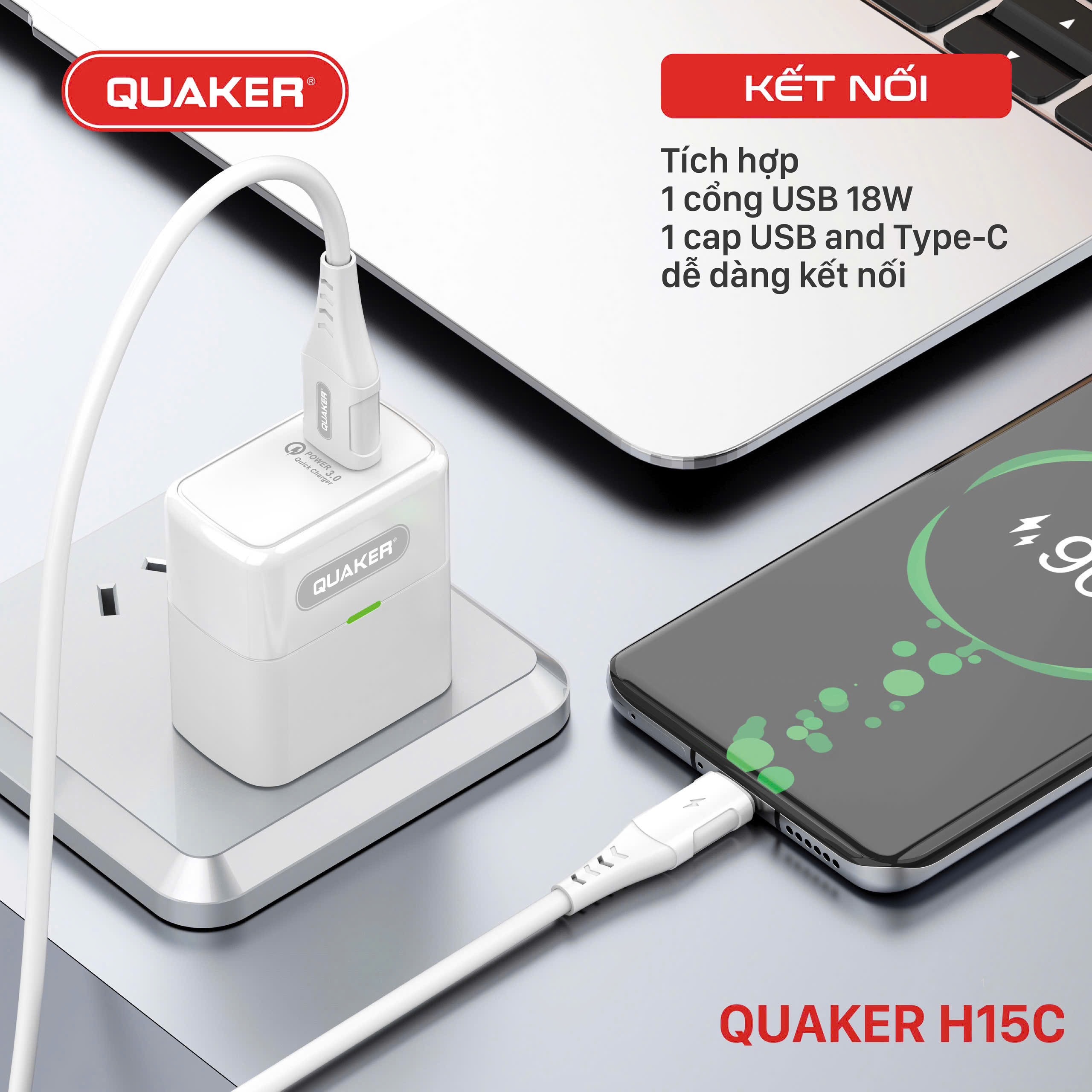Bộ Sạc Nhanh Quaker H15 - 22W Quick Charge 3.0 là bộ sạc cao cấp, chính hãng 100%, tích hợp công nghệ Quick Charge 3.0 22.5W, mang đến trải nghiệm sạc nhanh – an toàn – tiện lợi. Thiết kế nhỏ gọn cùng dây sạc bọc nhựa PVC đa năng giúp bạn dễ dàng sử dụng mọi lúc, mọi nơi.