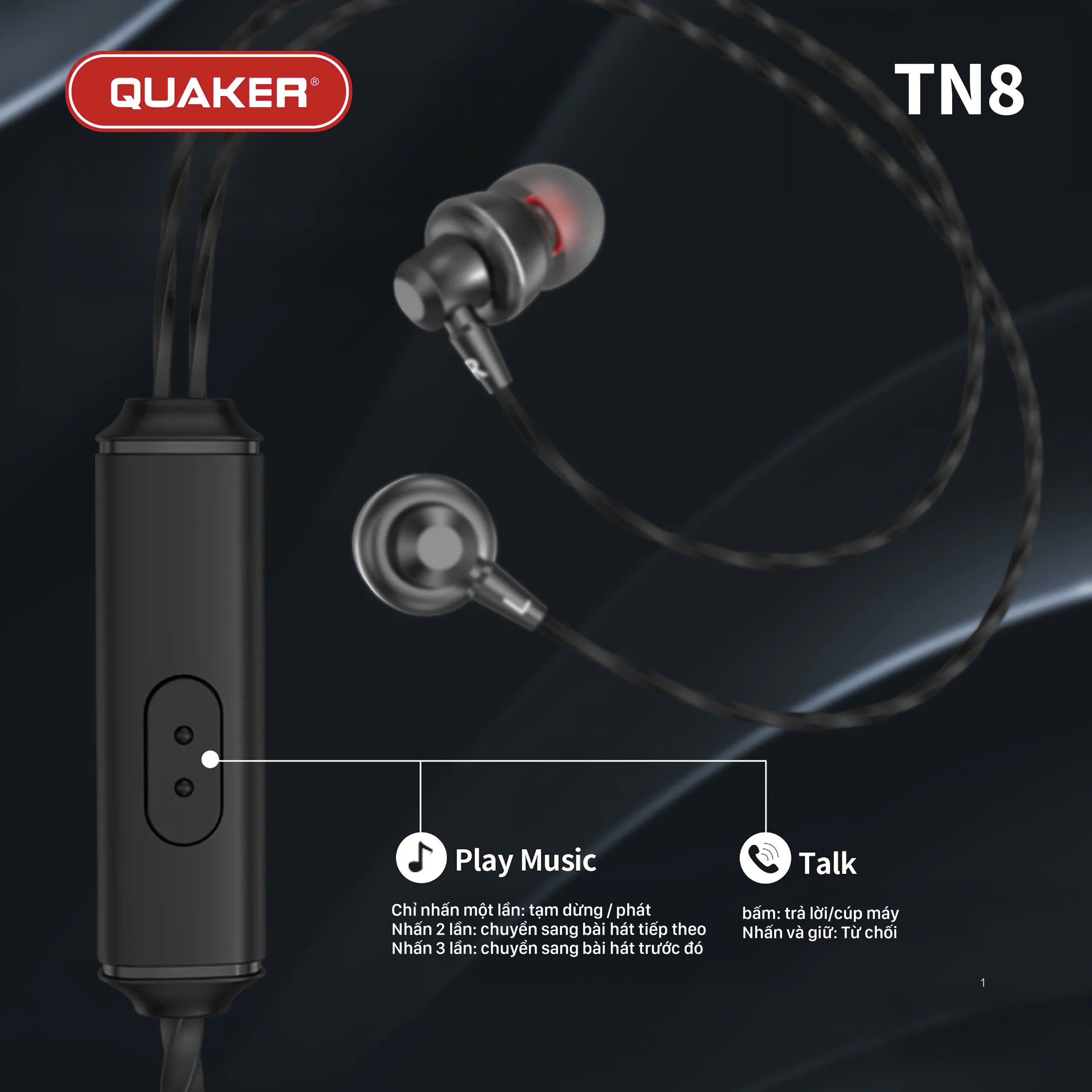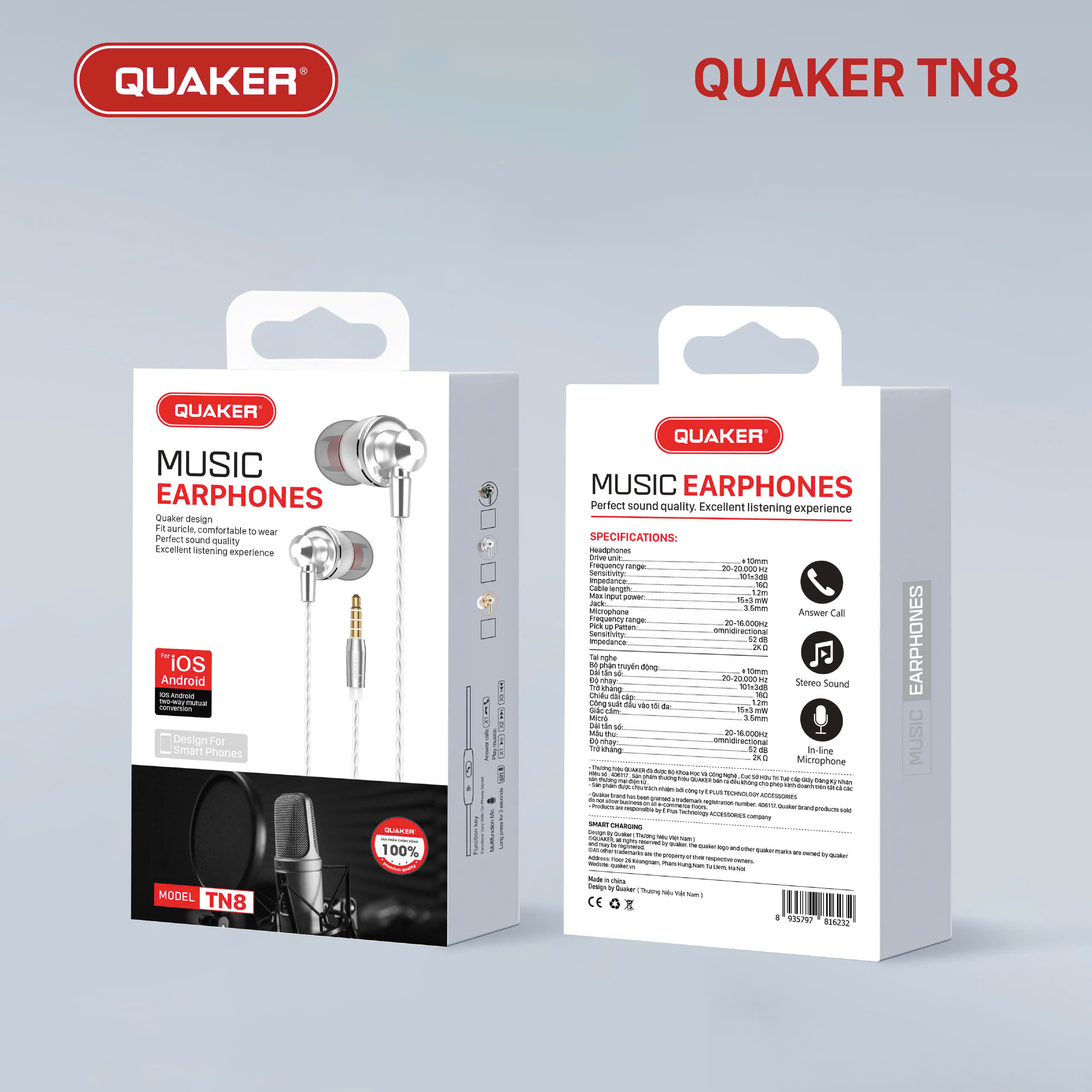 Tai Nghe Quaker TN8 Jack 3.5mm – Âm Thanh Sống Động, Đeo Êm Tai, Có Mic Đàm Thoại là lựa chọn lý tưởng cho người dùng cần một chiếc tai nghe có dây bền bỉ, âm thanh tốt và sử dụng đa năng cho học tập, làm việc, giải trí hay chơi game.